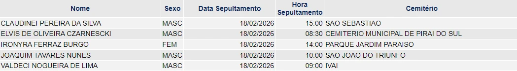 Falecimentos de 17/02/2026