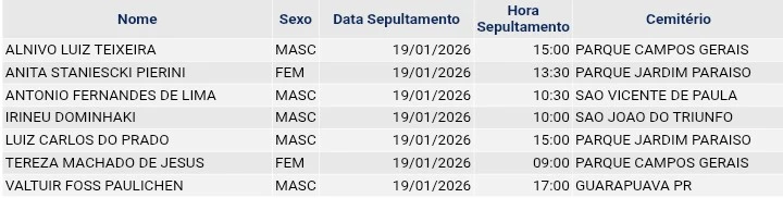 Clique aqui e veja os últimos falecimentos registrados em Ponta Grossa e região