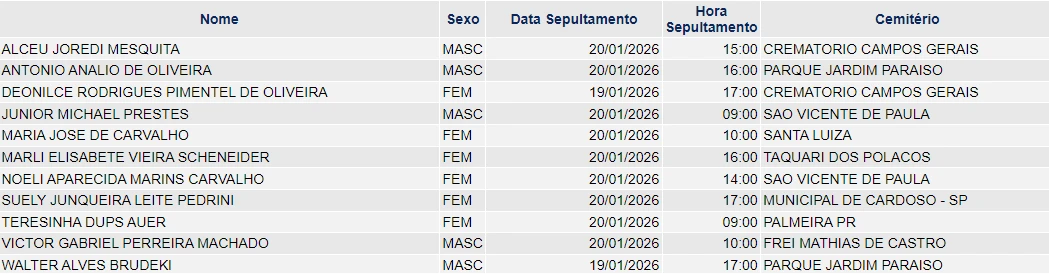 Clique aqui e veja os últimos falecimentos registrados em Ponta Grossa e região