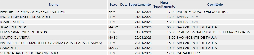 Clique aqui e veja os últimos falecimentos registrados em Ponta Grossa e região
