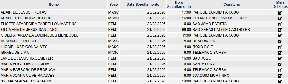 Clique aqui e veja os últimos falecimentos registrados em Ponta Grossa e região