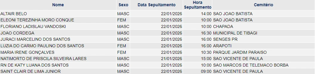 Clique aqui e veja os últimos falecimentos registrados em Ponta Grossa e região