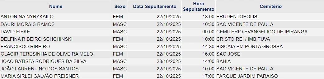 Clique aqui e veja os últimos falecimentos registrados em Ponta Grossa e região