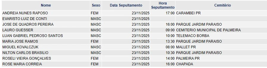 Clique aqui e veja os últimos falecimentos registrados em Ponta Grossa e região