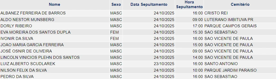 Clique aqui e veja os últimos falecimentos registrados em Ponta Grossa e região