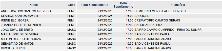 Clique aqui e veja os últimos falecimentos registrados em Ponta Grossa e região.