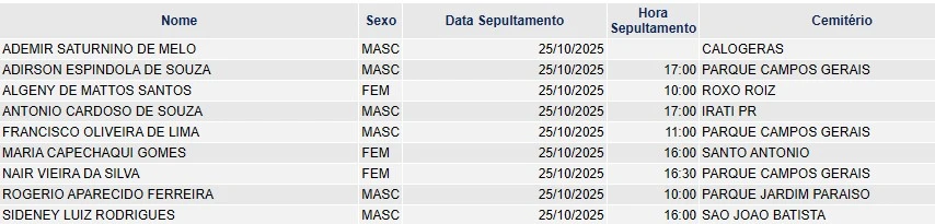 Clique aqui e veja os últimos falecimentos registrados em Ponta Grossa e região