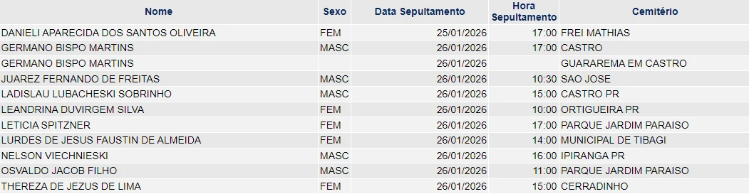 Clique aqui e veja os últimos falecimentos registrados em Ponta Grossa e região