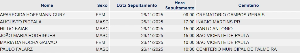 Clique aqui e veja os últimos falecimentos registrados em Ponta Grossa e região