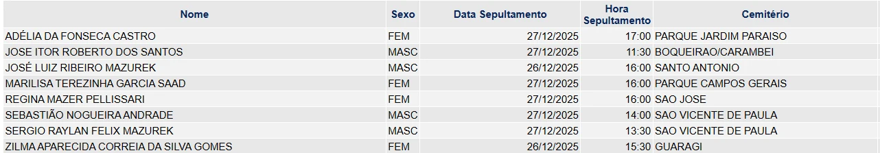 Clique aqui e veja os últimos falecimentos registrados em Ponta Grossa e região