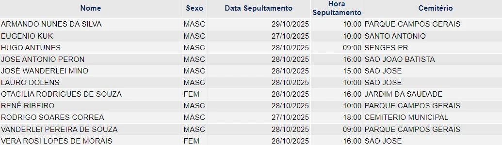 Clique aqui e veja os últimos falecimentos registrados em Ponta Grossa e região
