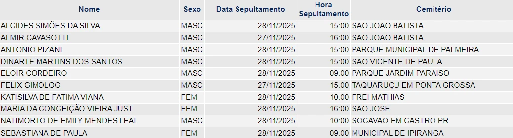 Clique aqui e veja os últimos falecimentos registrados em Ponta Grossa e região