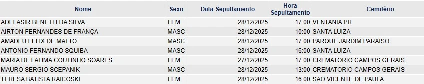 Clique aqui e veja os últimos falecimentos registrados em Ponta Grossa e região