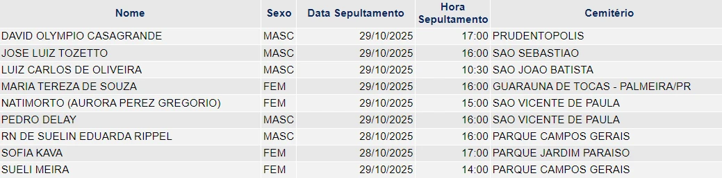 Clique aqui e veja os últimos falecimentos registrados em Ponta Grossa e região