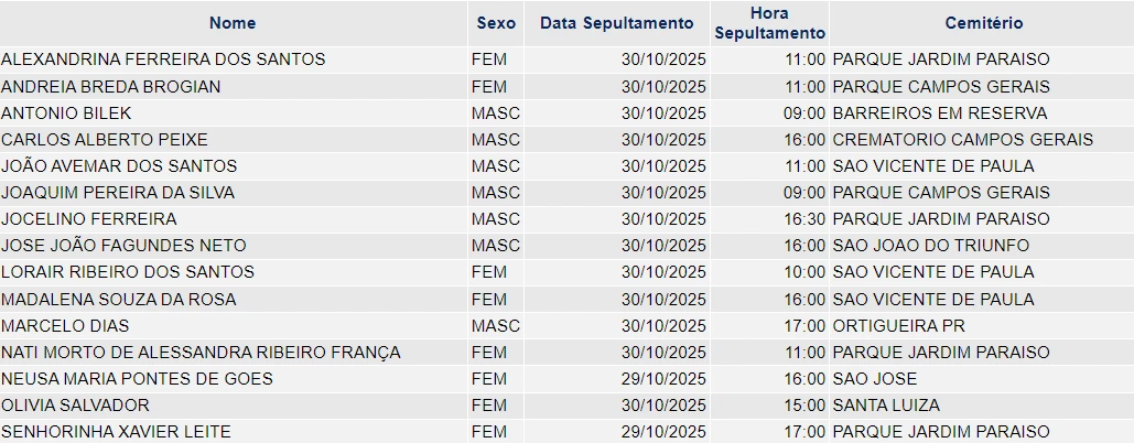 Clique aqui e veja os últimos falecimentos registrados em Ponta Grossa e região