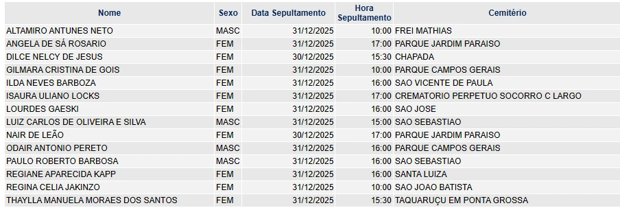 Clique aqui e veja os últimos falecimentos registrados em Ponta Grossa e região