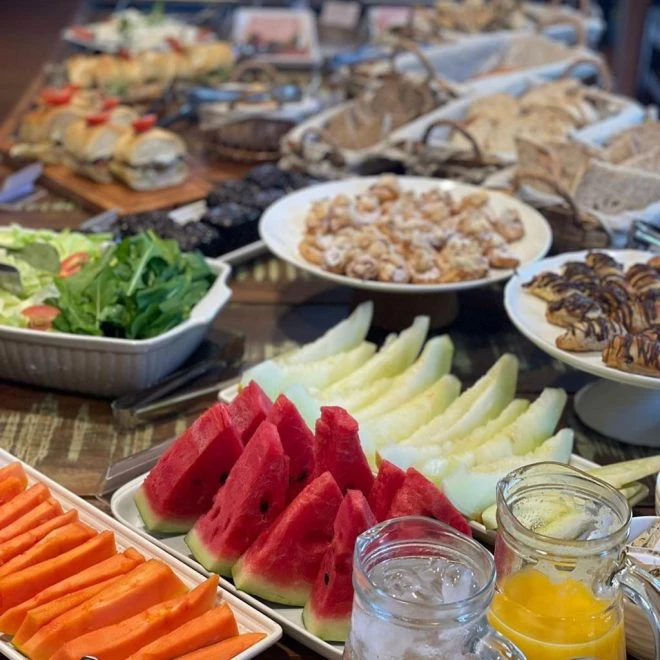 O brunch tem mesa central de consumo livre e possui uma vasta variedade de produtos. Entre eles estão frutas da época, pães de fermentação natural, frios, geleias caseiras, preparações de proteínas quentes, opções vegetarianas, salada, massa, sanduíches, bolos, pudins, mini pain du chocolat, mini croissants de amêndoas, além de sucos, iogurtes, café Domein e leite. Está incluso também um pedido quente que o cliente pode escolher entre omelete, tapioca ou crepioca.