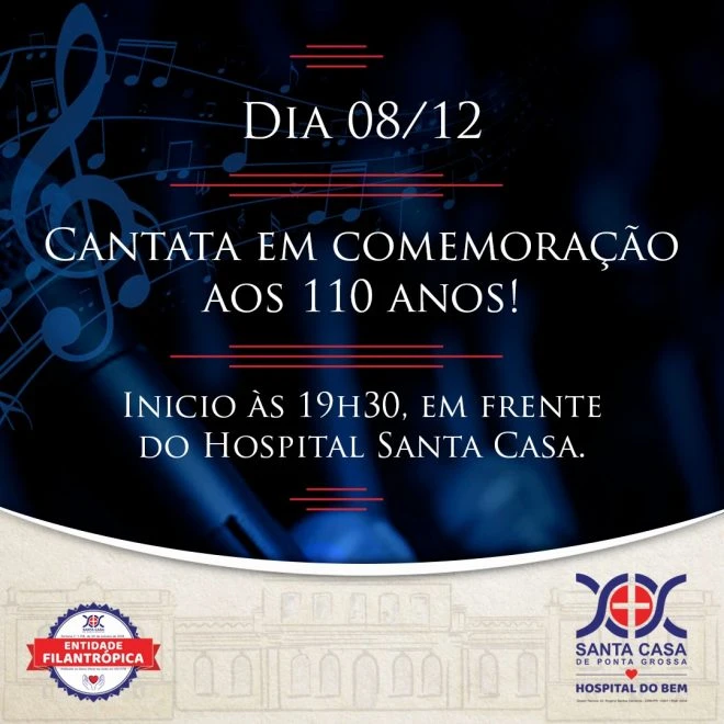 O que: Cantata em comemoração aos 110 anos da Santa Casa de Ponta Grossa.