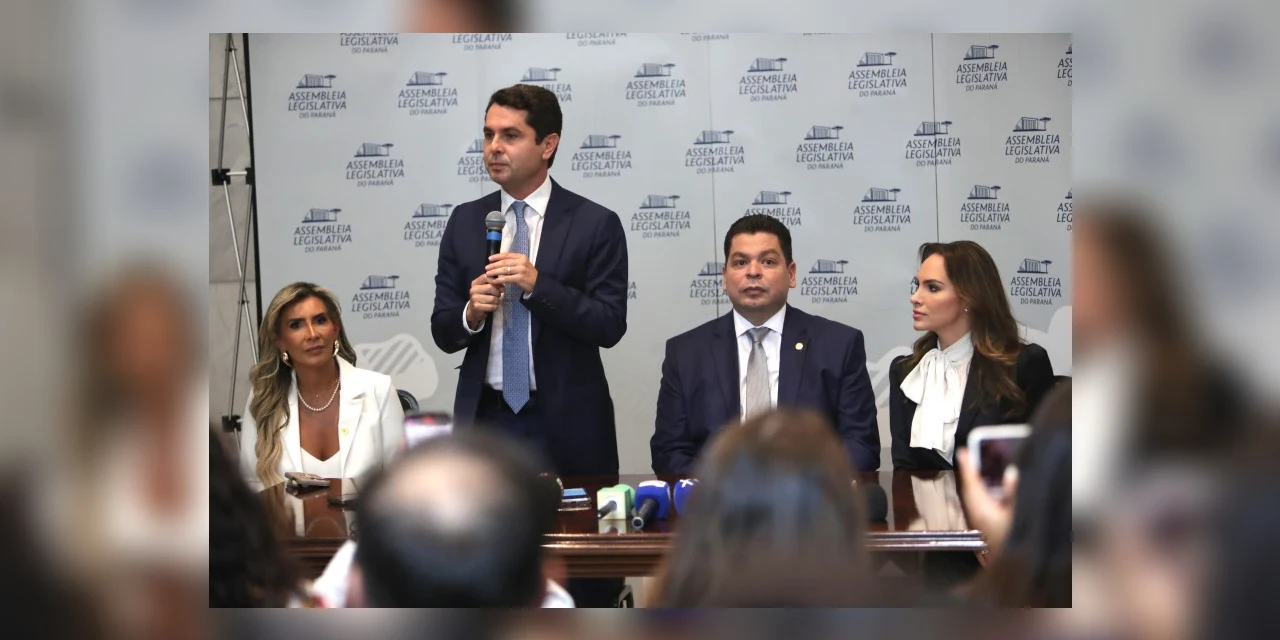 Curi assumiu nesta segunda a presidência da Casa para o biênio 2025-2027. Antes da posse, ele concedeu uma entrevista coletiva no Salão Nobre da Assembleia. Também participaram da conversa com a imprensa o primeiro-secretário, deputado Gugu Bueno (PSD), a segunda-secretária, deputada Maria Victoria (PP), e a primeira vice-presidente, deputada Flávia Francischini (União).