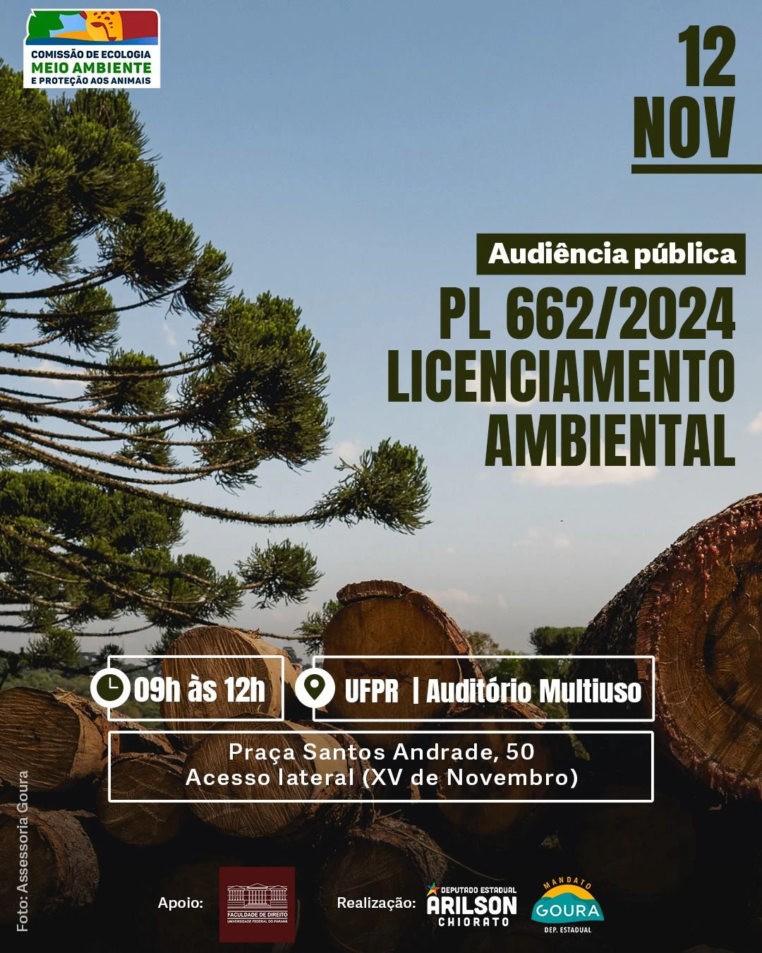 Audiência Pública: "Análise do Projeto de Lei nº 662/2024, que dispõe sobre normas gerais para o licenciamento ambiental no Estado do Paraná"