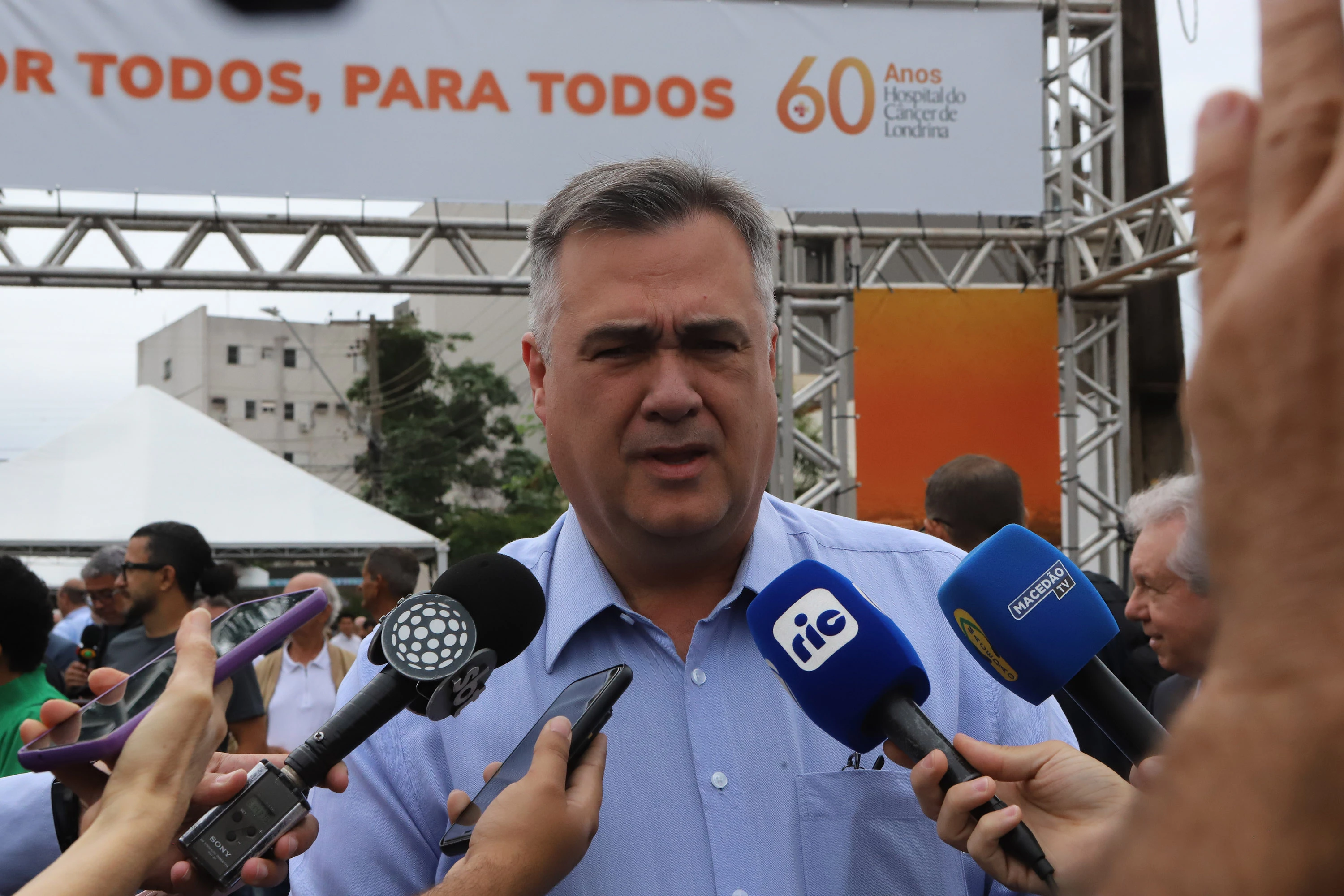 "É um trabalho de regionalização da Saúde do Paraná, que atinge várias especialidades. Estivemos ontem [sexta, 31], em Londrina, lançando um aporte financeiro do Estado, da bancada dos deputados estaduais da Assembleia Legislativa. Vamos colocar R$ 50 milhões numa obra de uma nova torre do Hospital do Câncer de Londrina (HCL). Para se ter uma ideia, o HCL tem hoje 20 mil metros quadrados e vai ganhar mais 15 mil metros quadrados. Ele atende a 120 municípios e faz o processo completo de tratamento de câncer. Neste momento, além de revelar esse recurso, também ficou combinada a expansão dos serviços de um Posto Avançado, um Ambulatório Avançado do HCL para Santo Antônio da Platina. Isso já vem sendo tratado há muitos anos, tem a mão de muita gente, do próprio hospital", destaca Beto Preto.