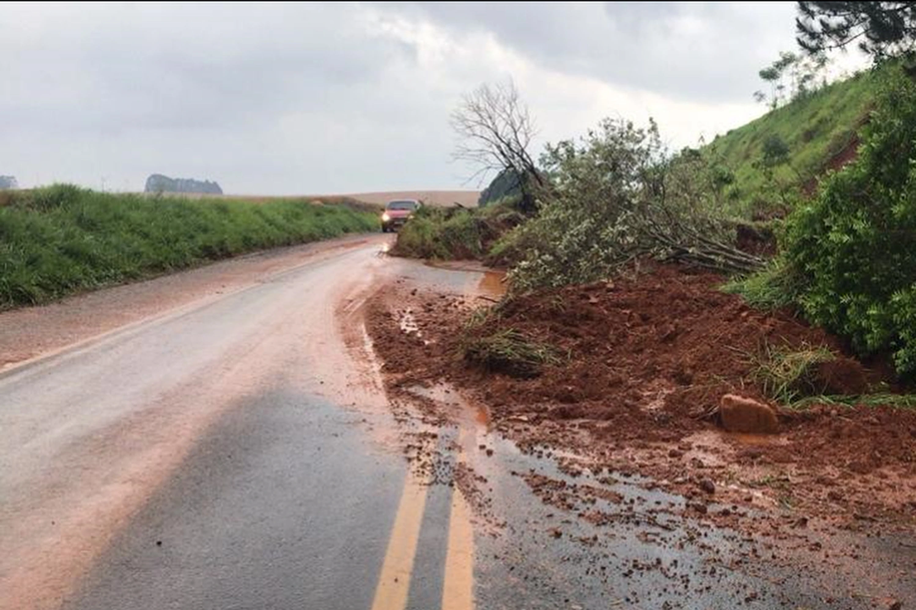PR-364 entre Irati e São Mateus do Sul - Bloqueio parcial por escorregamento de terra que atingiu mais da metade da pista em um segmento. O trecho atualmente passa por obra de pavimentação. A empresa responsável pelos serviços já foi acionada para trabalhar na liberação da pista com a maior celeridade possível.