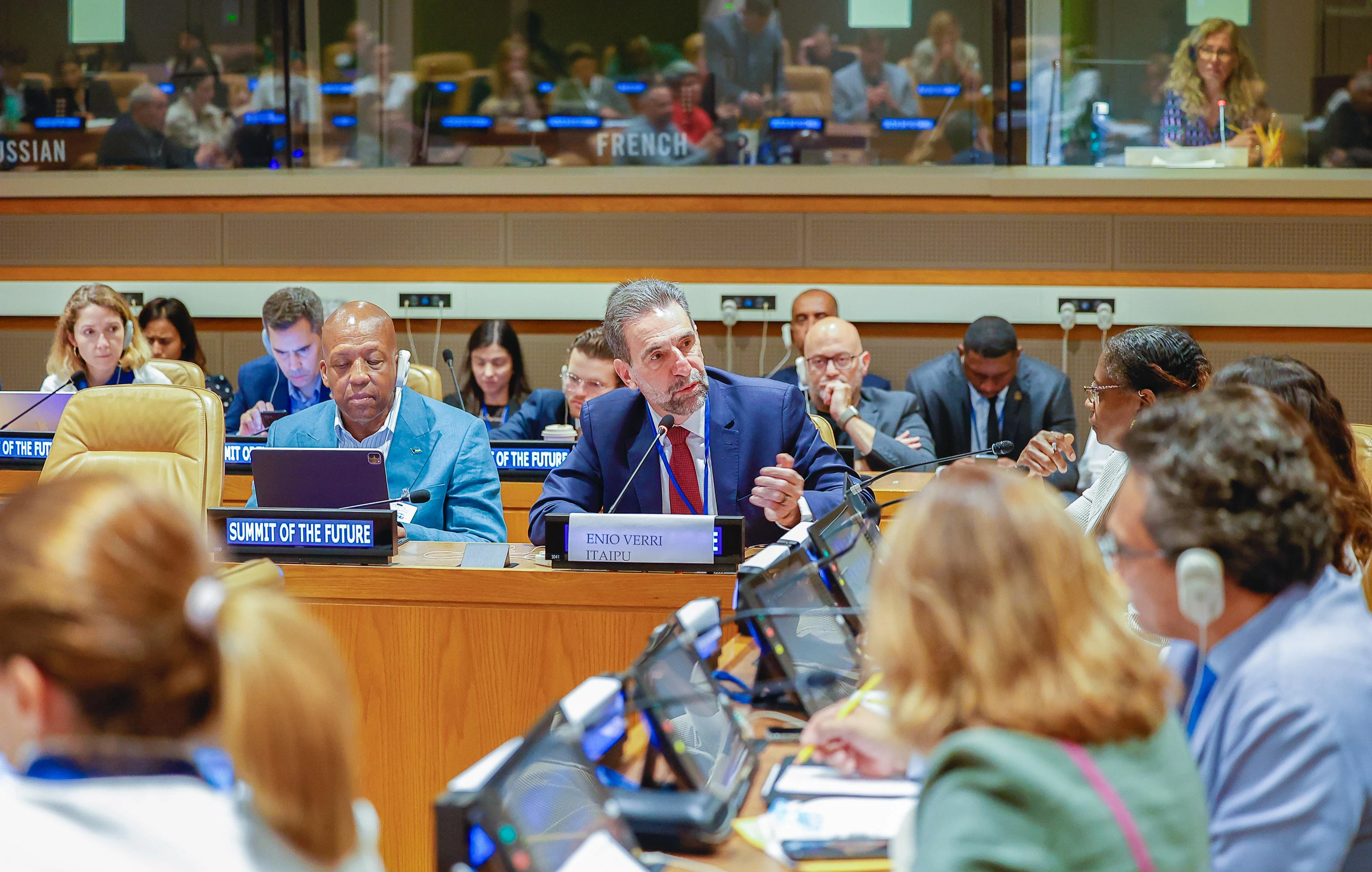 O diretor-geral brasileiro da Itaipu Binacional, Enio Verri, acompanhou neste domingo (22), na sede das Nações Unidas (ONU), em Nova Iorque, o discurso do presidente Luiz Inácio Lula da Silva na abertura do Cúpula do Futuro. No evento, foi aprovado o Pacto para o Futuro, documento contendo compromissos sobre reformas no sistema multilateral.