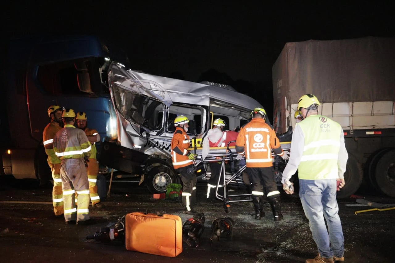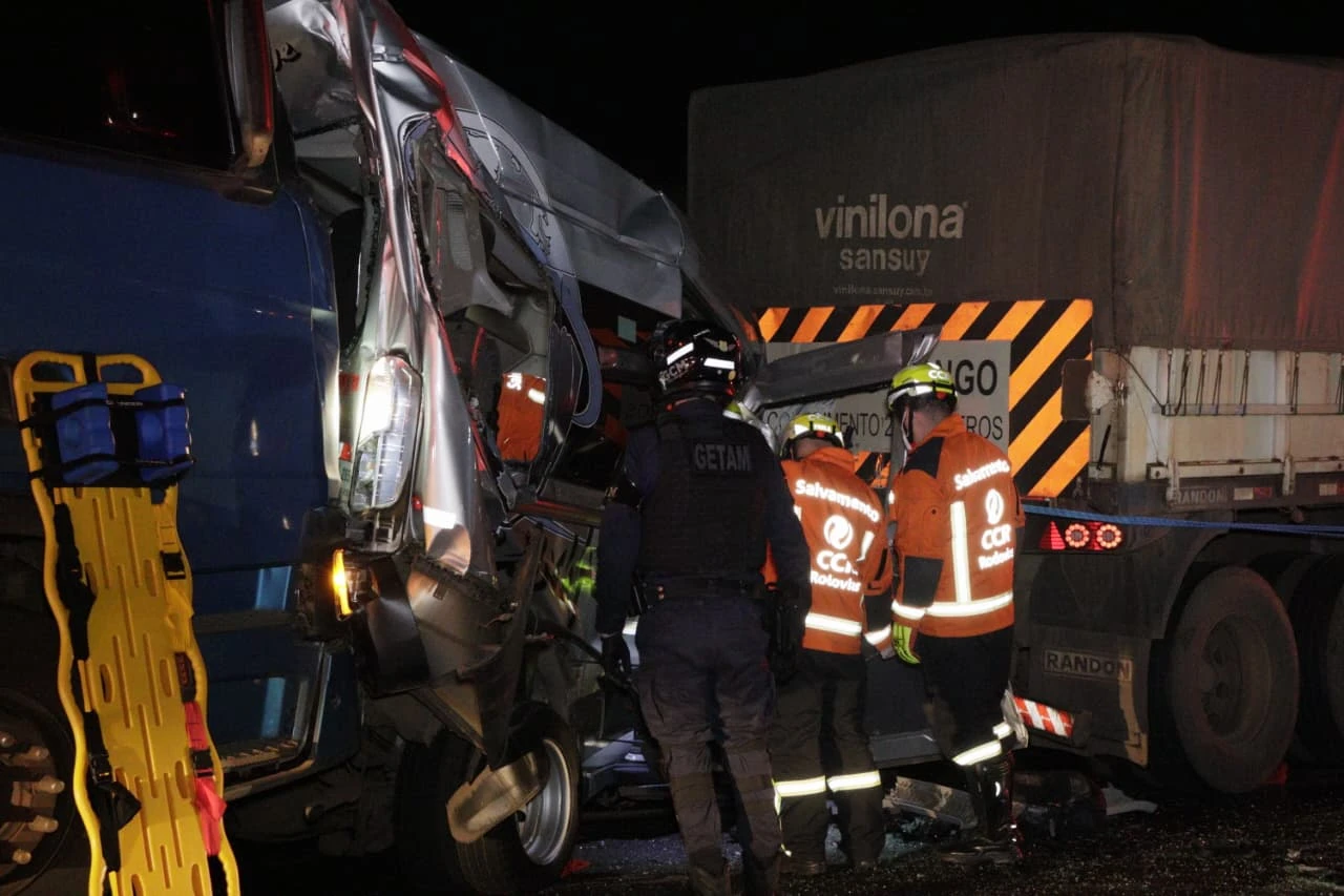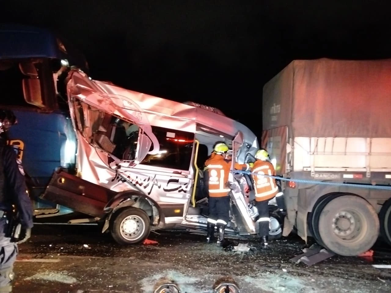 Um grave engavetamento registrado por volta das 23h30 de sexta-feira (14), no km 485 da BR-376, mobilizou equipes da Polícia Rodoviária Federal (PRF) e serviços de socorro em Ponta Grossa. O acidente envolveu dois caminhões e uma van de passageiros e ocorreu em trecho onde havia obras de recomposição de pavimento, situação que provocava lentidão e congestionamento na rodovia.