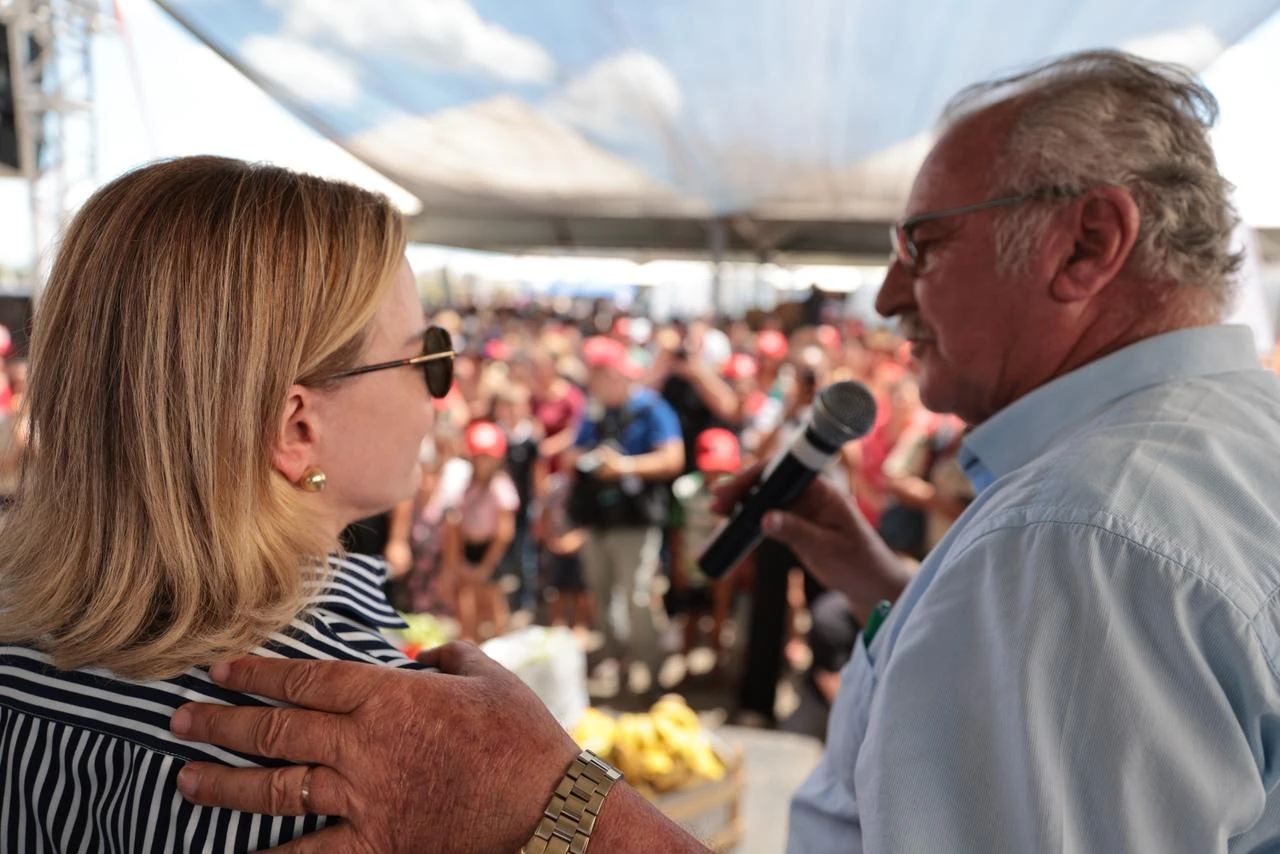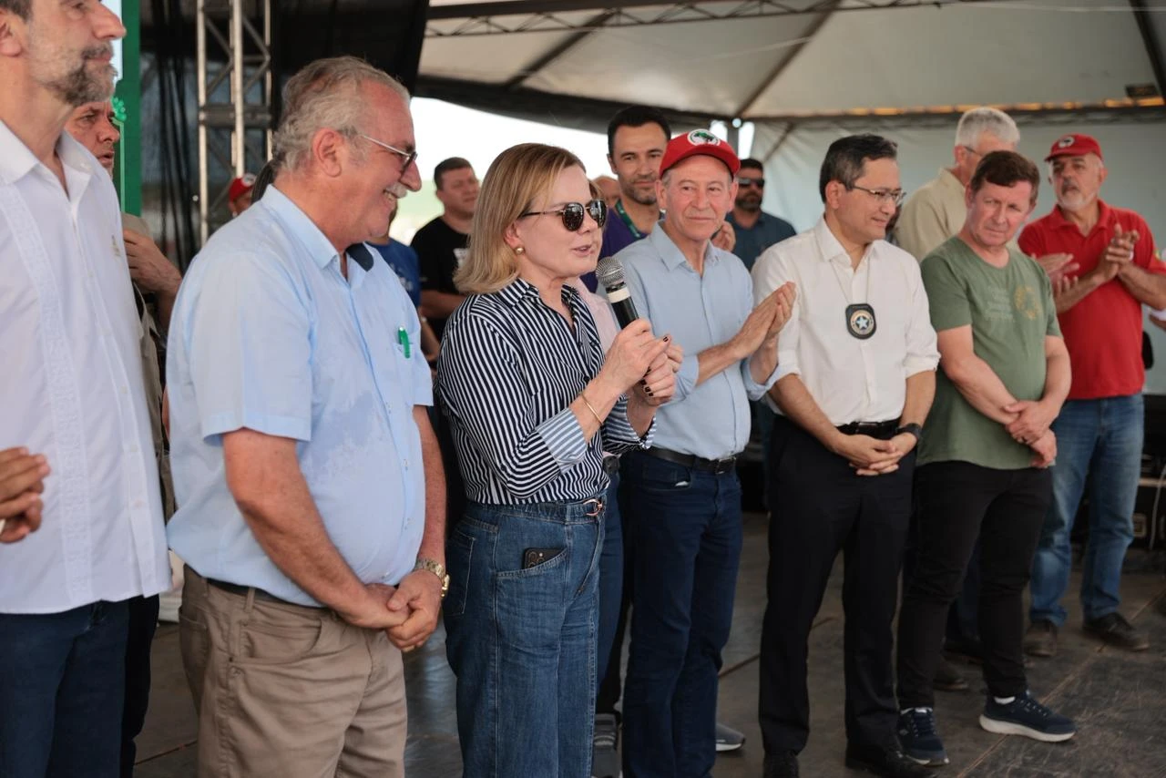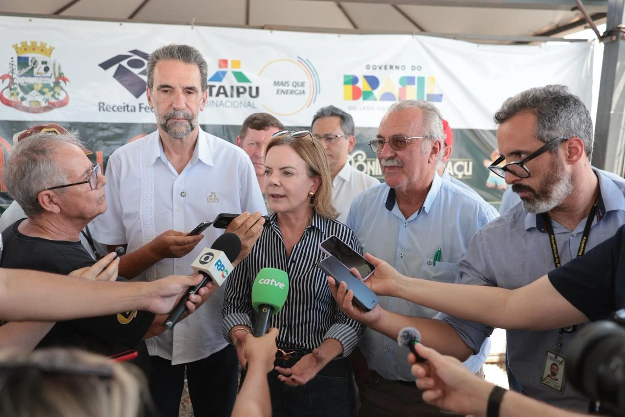 A ministra-chefe das Relações Institucionais da Presidência da República, Gleisi Hoffmann, visitou a cidade de Rio Bonito do Iguaçu/PR, neste sábado (20). Durante a agenda, a ministra esteve acompanhada do prefeito do município, Sezar Bovino, e do diretor-geral de Itaipu, Ênio Verri.
