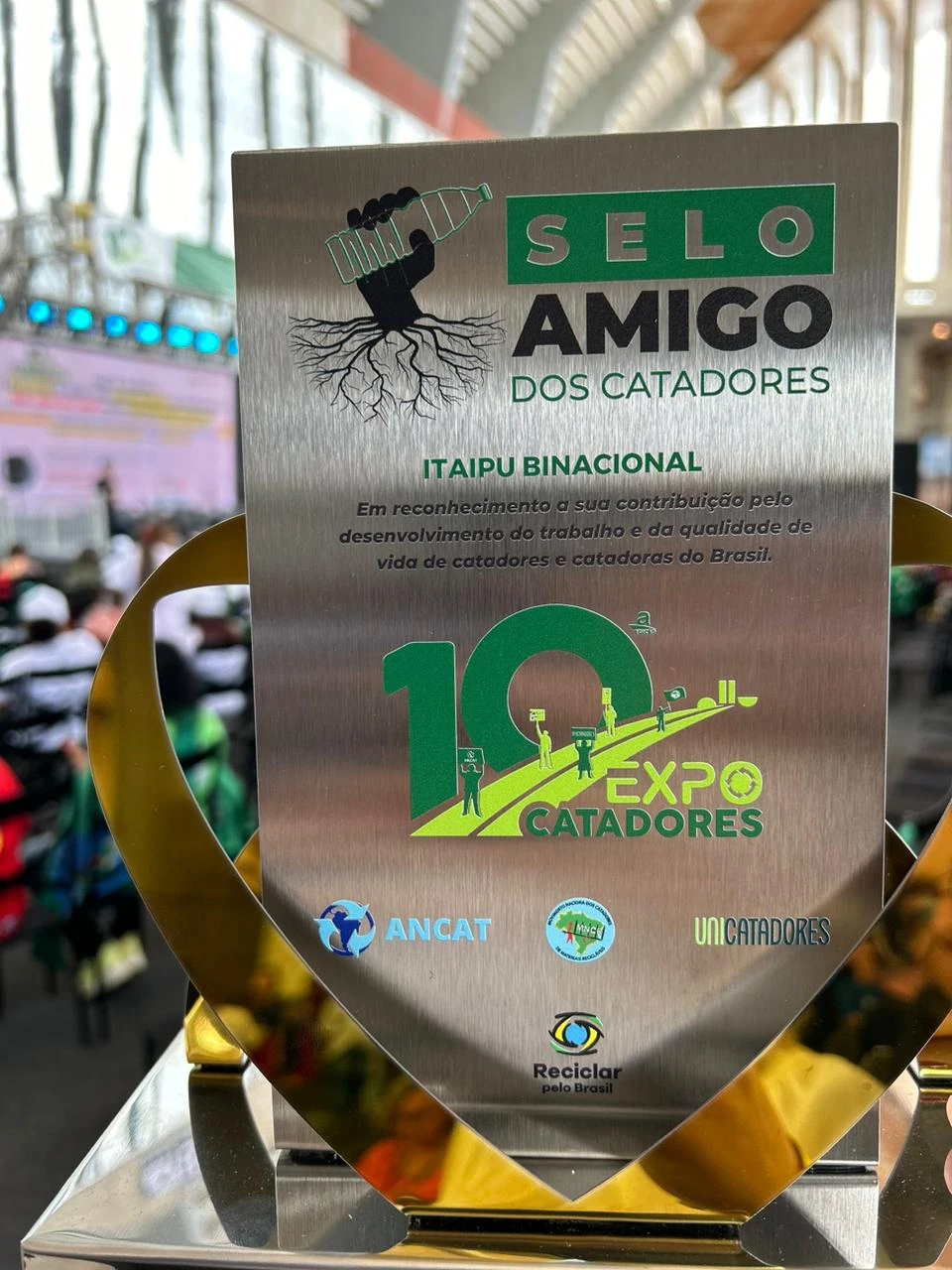 Nesta quarta-feira (20), a usina de Itaipu o recebeu o selo Amigos dos Catadores e Catadoras. O título é uma homenagem do Movimento Nacional dos Catadores de Materiais Recicláveis (MNCR) aos relevantes serviços prestados à categoria e ao desenvolvimento da reciclagem popular no Brasil.