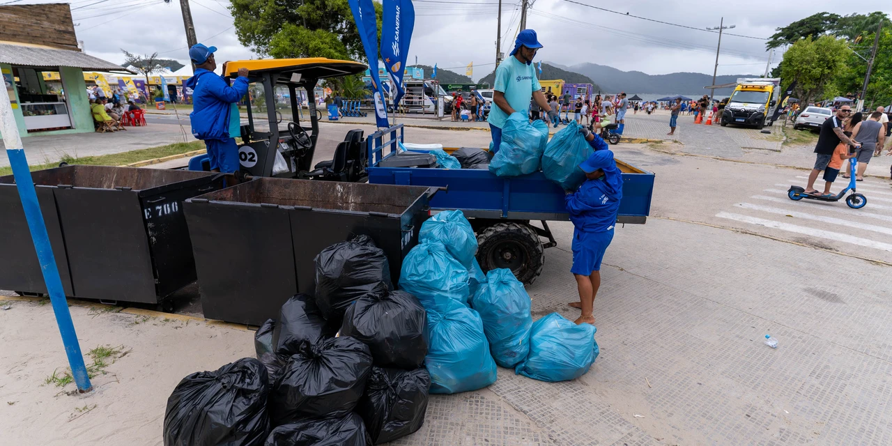 Cerca de 180 pessoas contratadas temporariamente, incluindo moradores do próprio Litoral, atuam na limpeza das praias. À noite, depois que os veranistas voltam para suas casas, máquinas saneadoras fazem a limpeza das areias, revolvendo o solo para retirar materiais menores, como bitucas de cigarro, tampas de garrafa e outros resíduos que acabam enterrados na areia.