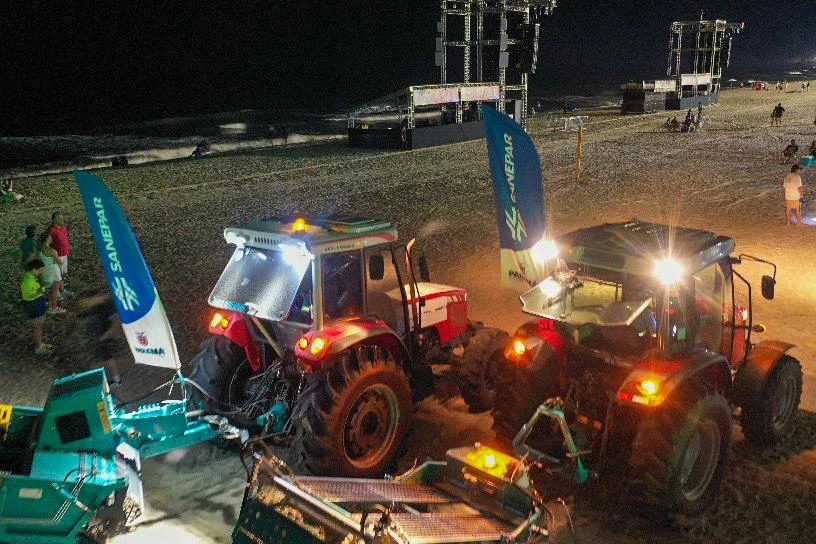 O gerente da Sanepar no Litoral, Marcos Muniz, explica que as máquinas utilizadas revolvem e peneiram a areia em profundidade média de 20 centímetros, garantindo o recolhimento inclusive de resíduos menores. “A Sanepar sempre faz o trabalho de limpeza manual, mas o diferencial esse ano é o uso das máquinas que fazem esse trabalho de escavação. Ela será usada em todos os shows durante todo o verão”, informou.