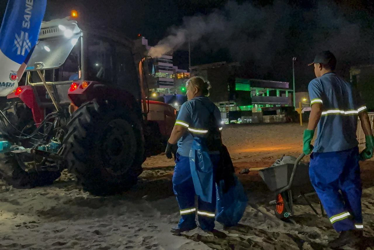 Péricles na noite de sexta-feira (10), no primeiro dia do Verão Maior Paraná, uma operação de limpeza organizada garantiu que as praias de Matinhos e Pontal do Paraná estivessem limpas e prontas para receber os banhistas já nas primeiras horas da manhã deste sábado (11).