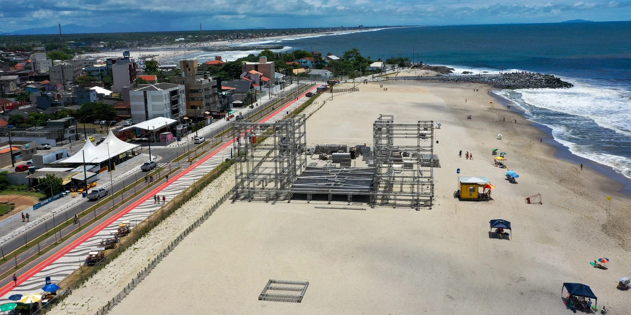 Em Matinhos, a previsão é de que tudo esteja pronto até a próxima quarta-feira (10), quando serão feitas as primeiras passagens de som e testagem das câmeras e de toda a estrutura que vai transmitir os shows em cinco telões gigantes instalados na orla da Avenida Atlântica. Em Pontal, a montagem começa nesta sexta-feira (5) no Centro de Eventos Marisol - como a estrutura não ficará sob a areia, a montagem será mais rápida, com previsão de conclusão já na segunda-feira (8).