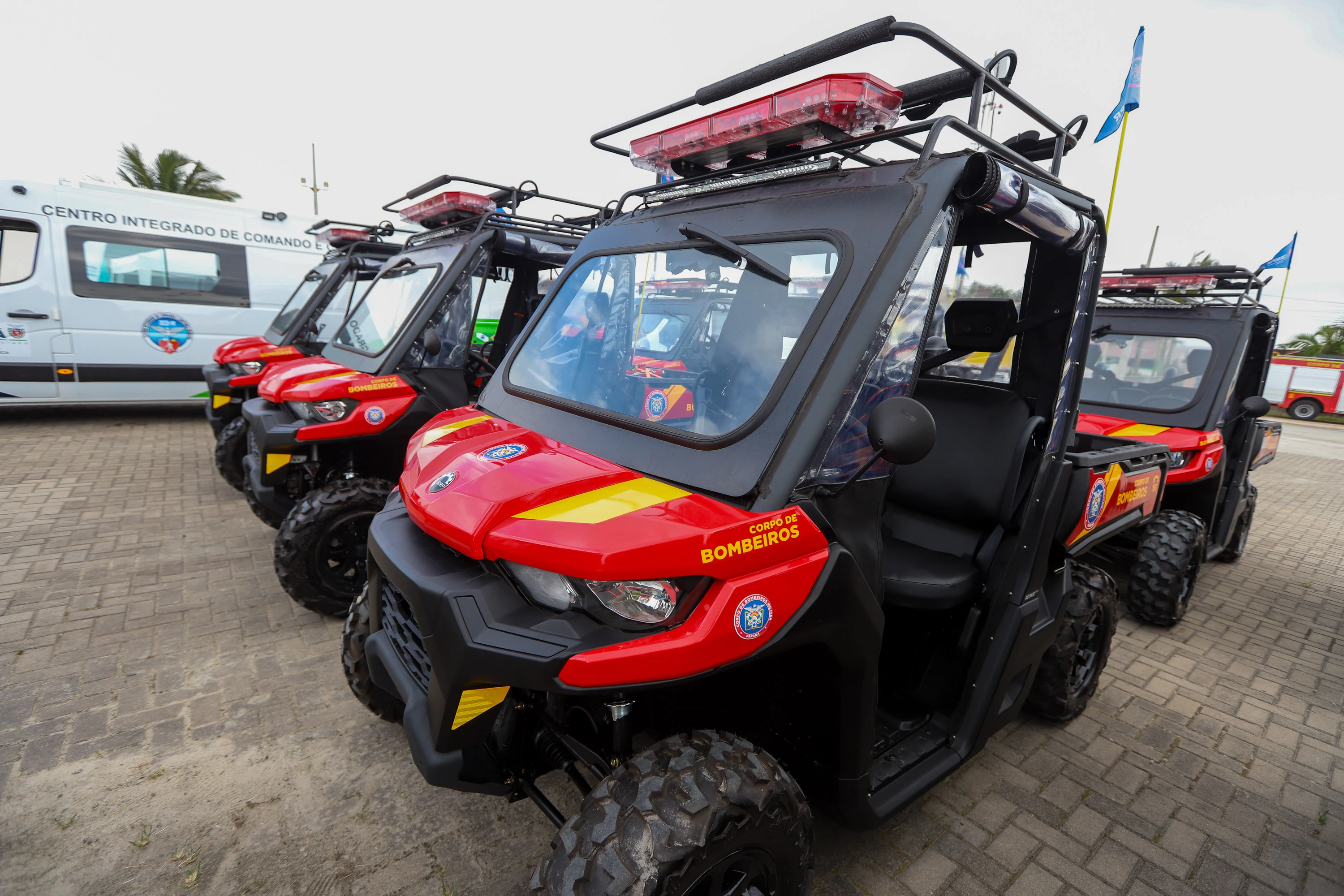 O Governo do Estado também entregou dez veículos utilitários do tipo UTV, com investimento total de R$ 1,5 milhão. Com sinais luminosos e sonoros que permitem agilidade, visibilidade no patrulhamento e deslocamento rápido na faixa de areia, os veículos possuem cabine fechada, o que permite o transporte mais efetivo de materiais que serão utilizados como apoio ao guarda-vidas de serviço.
