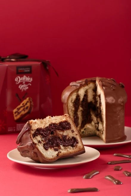 Sucesso em anos anteriores, Delírios de Gato Mia chega agora com nova receita, dessa vez com a massa tradicional branca. São 940g de panettone com recheio e cobertura de chocolate ao leite, além de ser decorado com os tradicionais chocolates Gato Mia no topo.