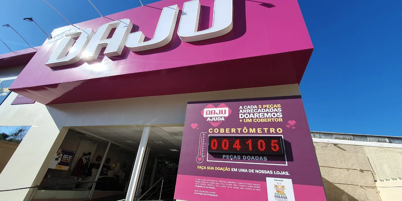 Neste ano que marca seus 40 anos, a Daju lança o Cobertômetro em parceria com o programa Aquece Paraná. É uma ação inédita da rede de lojas que visa beneficiar milhares de pessoas que não tem como se aquecer nos dias frios.