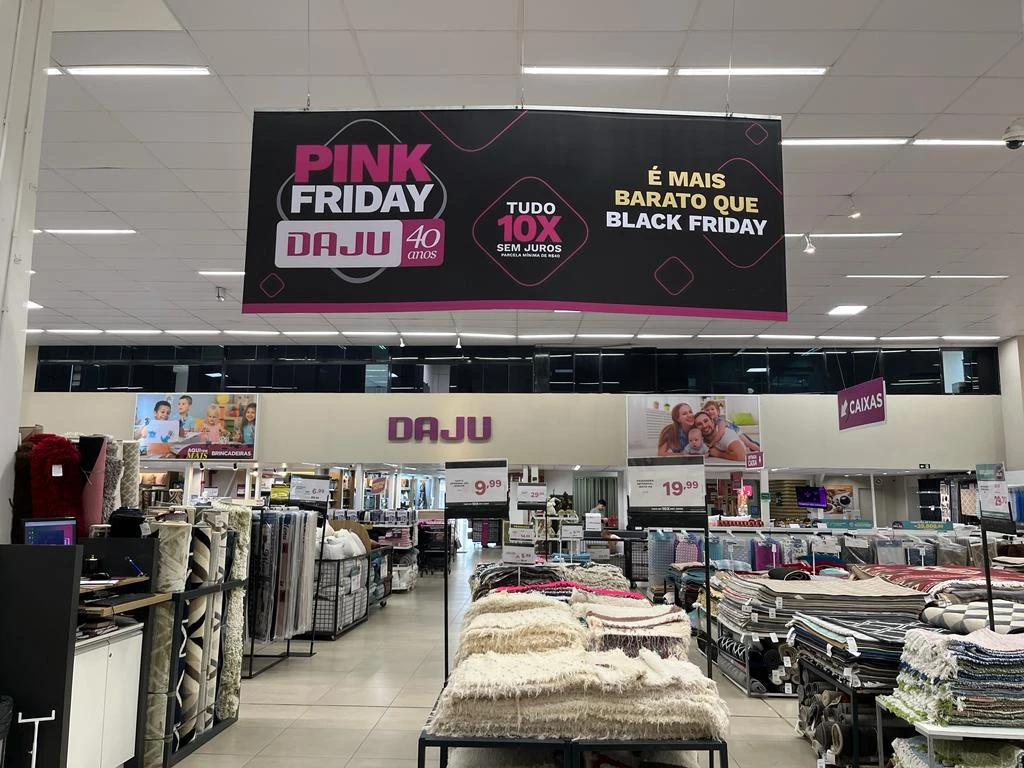 E na Daju, ela é ainda mais especial, pois além de ser batizada de Pink Friday, em alusão a cor da marca, a campanha que ganhou essa versão exclusiva, faz jus ao slogan: Pink Friday Daju, mais barato que Black Friday.
