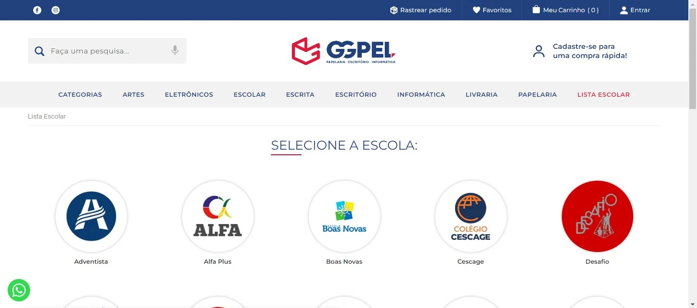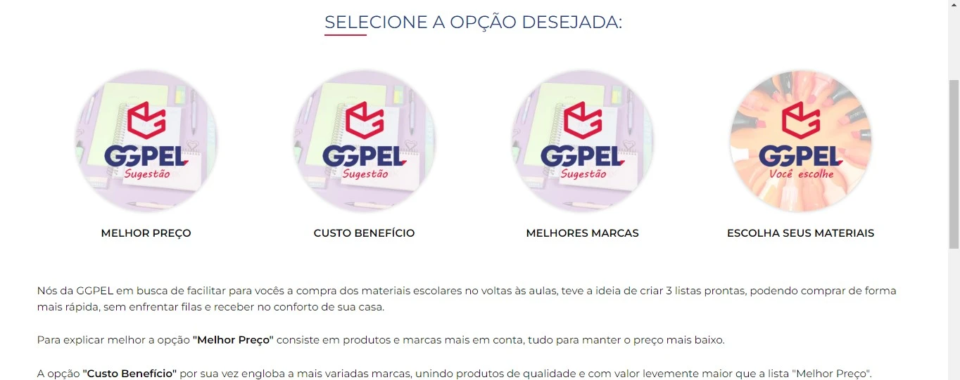 no site do GGPEL. Uma aba especial do site dispõe das listas de materiais escolares solicitadas pelas principais escolas de Ponta Grossa. "Tem três opções de listas escolares, é bem fácil de fazer a compra. Uma mais básica, uma intermediária, uma avançada, todos são materiais bons. O diferencial é que está com a lista pronta, é só clicar e comprar de acordo como a escola pediu. A pessoa sai com a lista pronta e entregue no outro dia em sua casa", diz Gilceu.