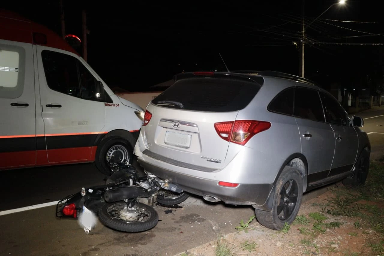 Um rapaz de 24 anos foi hospitalizado, com ferimentos gravíssimos, depois de colidir uma moto Honda CG 160cc prata contra uma Hyundai Vera Cruz prata. O automóvel em que a moto colidiu estava parado na esquina da Rua Padre Nóbrega com a Rua Lopes Trovão, nas proximidades do Estádio Germano Krüger, no bairro Oficinas, em Ponta Grossa.