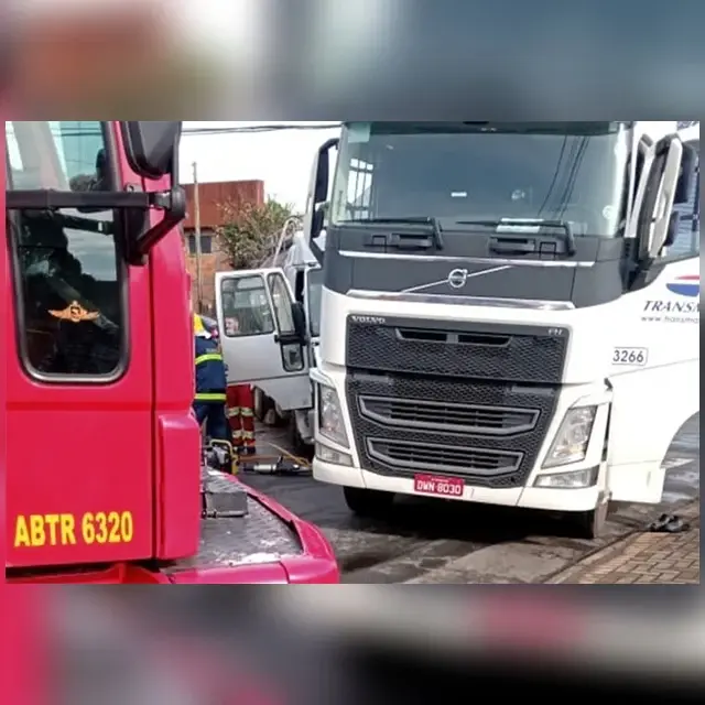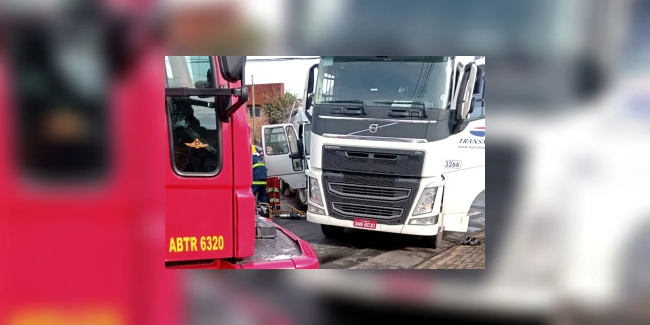 Um acidente entre dois caminhões bloqueou o trânsito nas ruas Flavio Carvalho Guimarães e Minas Gerais, vias de acesso para a PR-151, na manhã desta terça-feira (9), na região do bairro Nova Rússia.