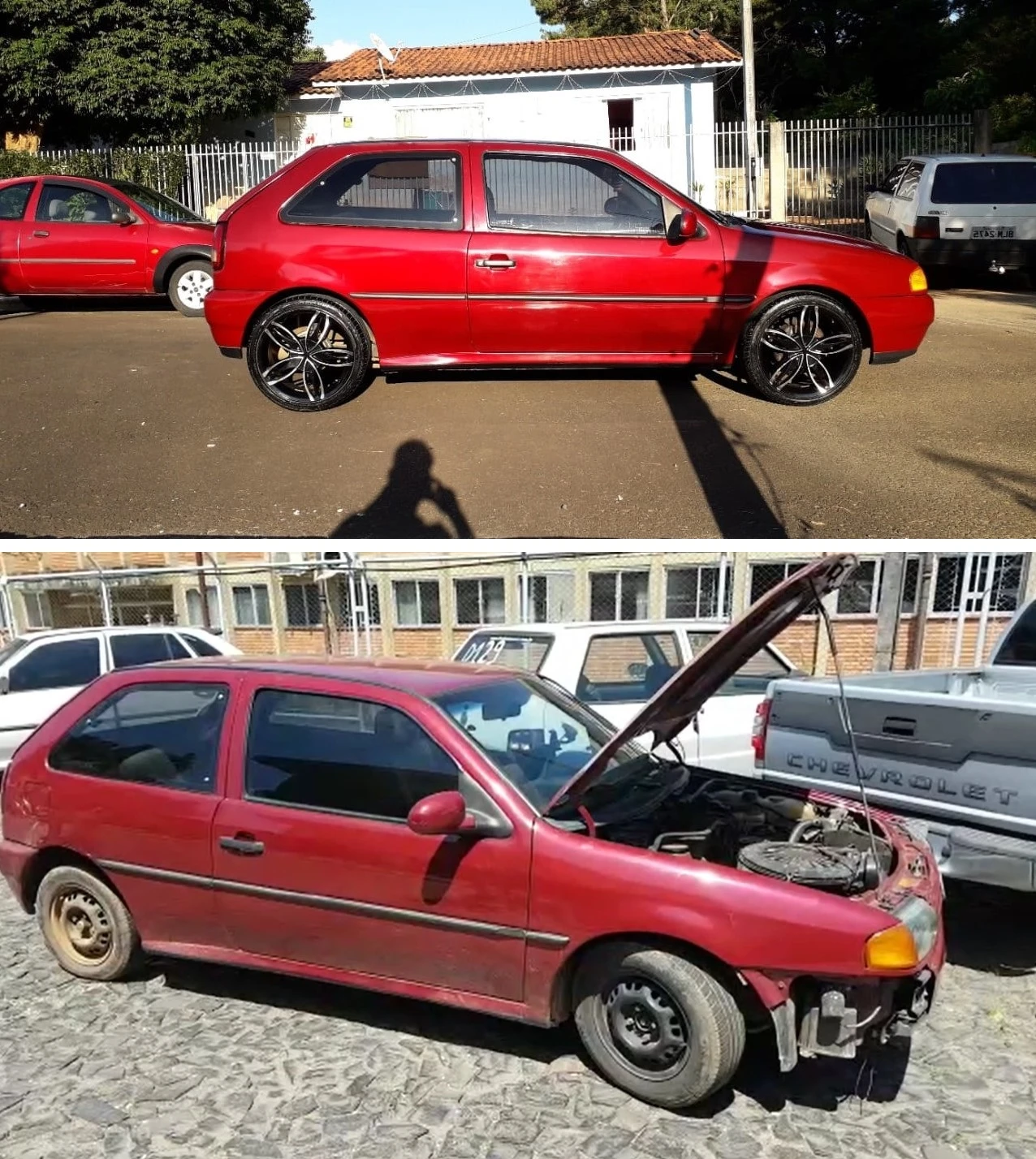 Automóvel é encontrado parcialmente "depenado" no Nova Rússia; veja antes e depois