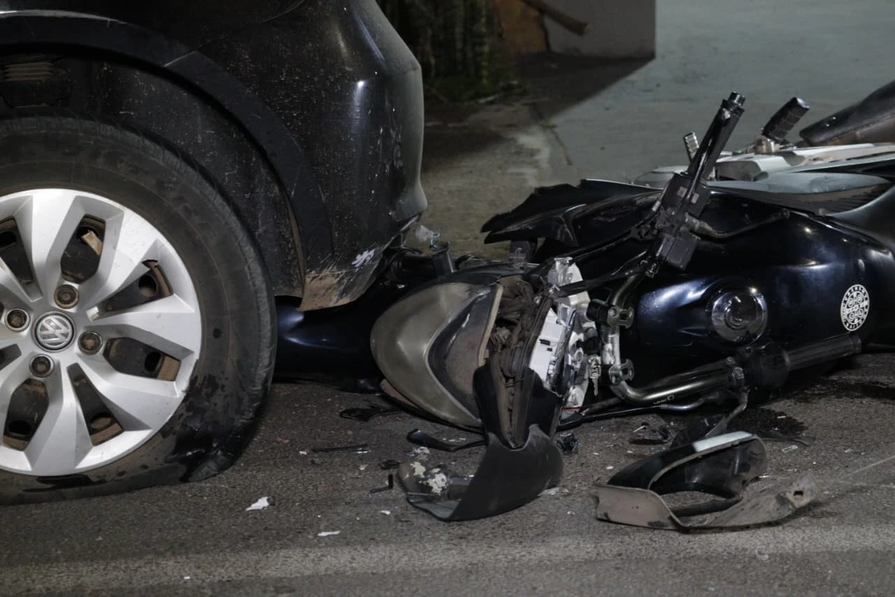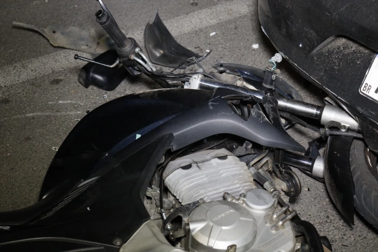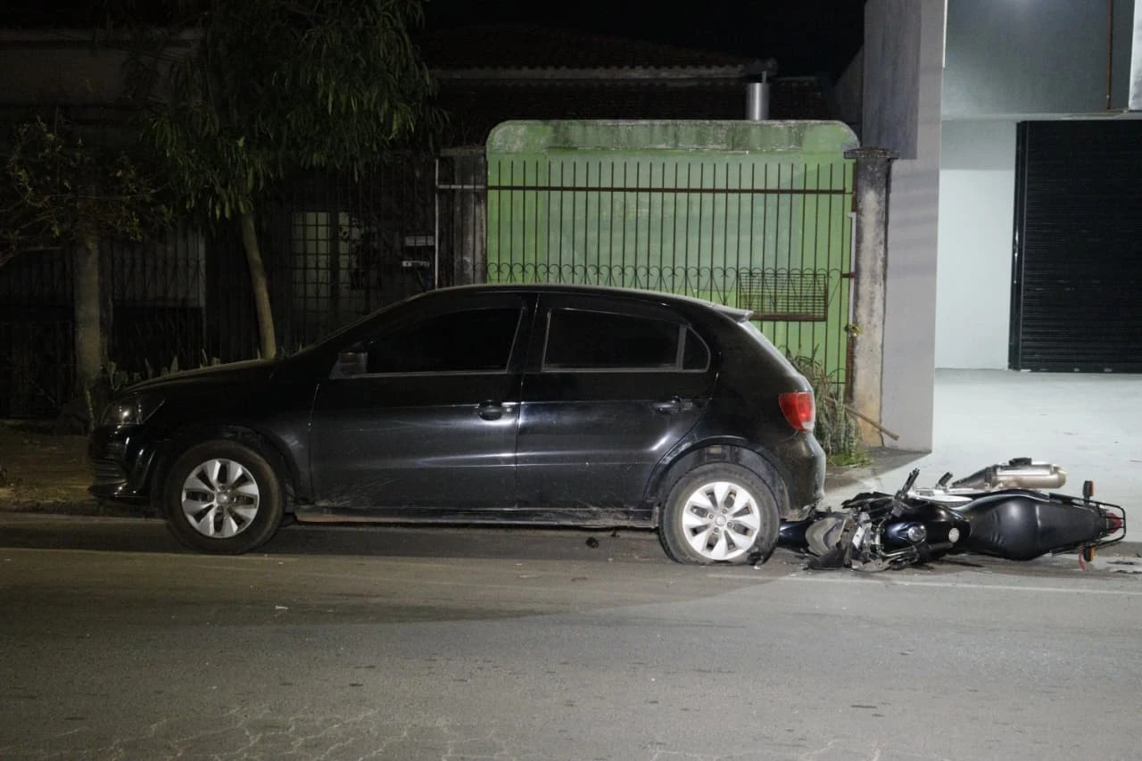 Com o impacto, a motocicleta caiu, deslizou pelo asfalto e bateu em outro carro que estava estacionado. O condutor sofreu contusões e escoriações pelo corpo e foi encaminhado pelo Siate ao Hospital Geral Unimed (HGU) com ferimentos moderados.