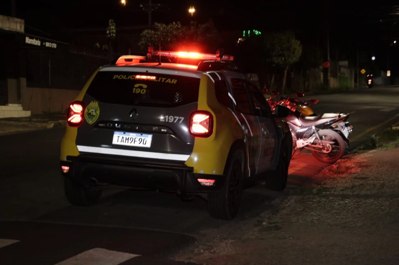 Um motociclista, de 19 anos, ficou ferido após se envolver em uma colisão com um carro na madrugada deste sábado (29), em Ponta Grossa. O acidente aconteceu em um cruzamento do bairro Uvaranas e foi flagrado por câmeras de segurança.