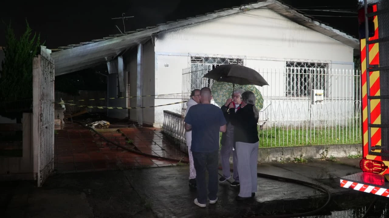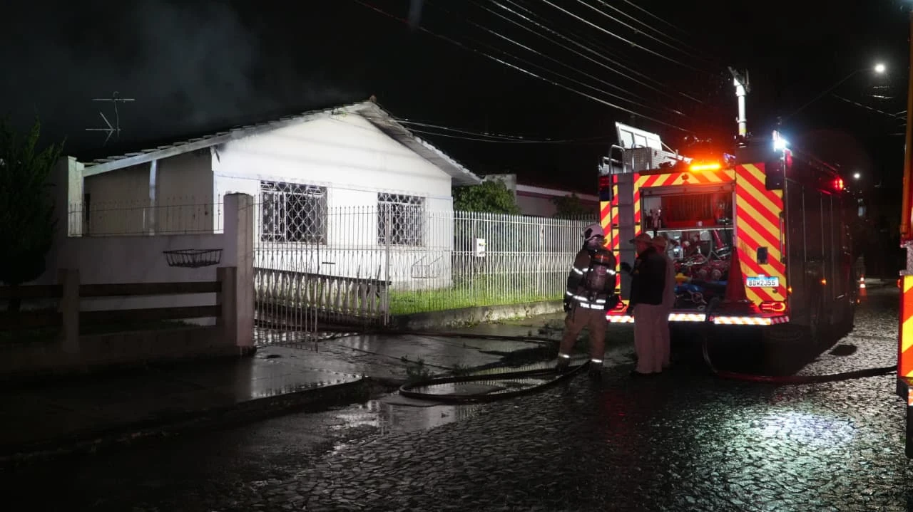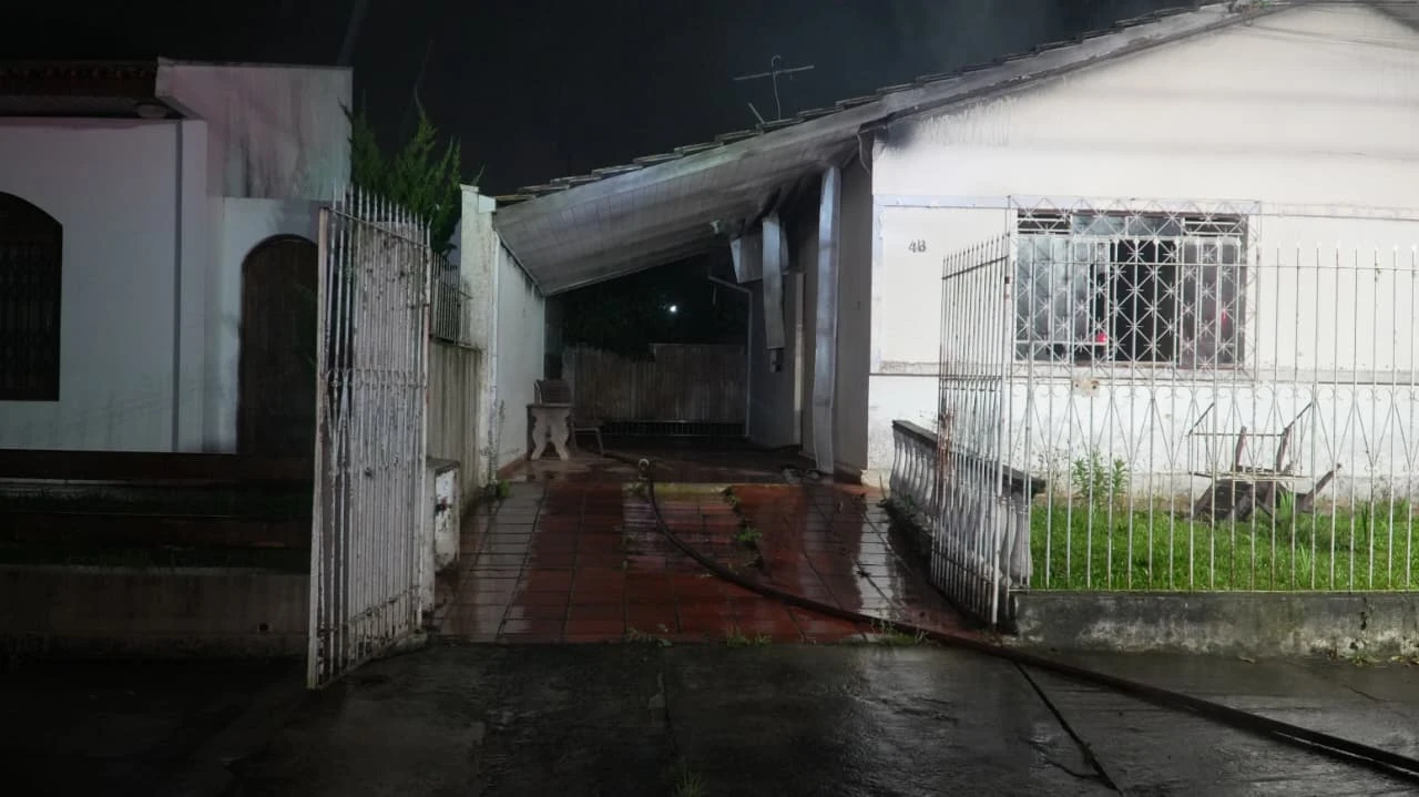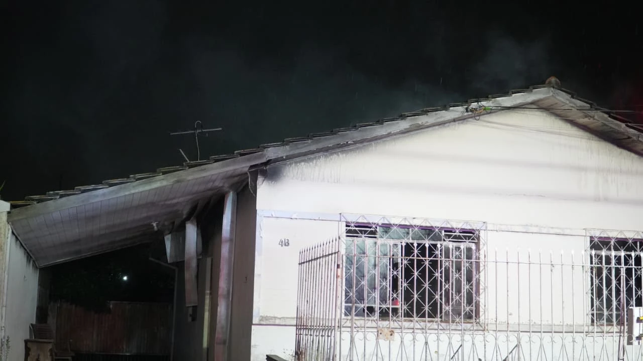 O Corpo de Bombeiros realizou o combate ao fogo, mas o imóvel sofreu danos. A rua necessitou ser interditada para a ação.