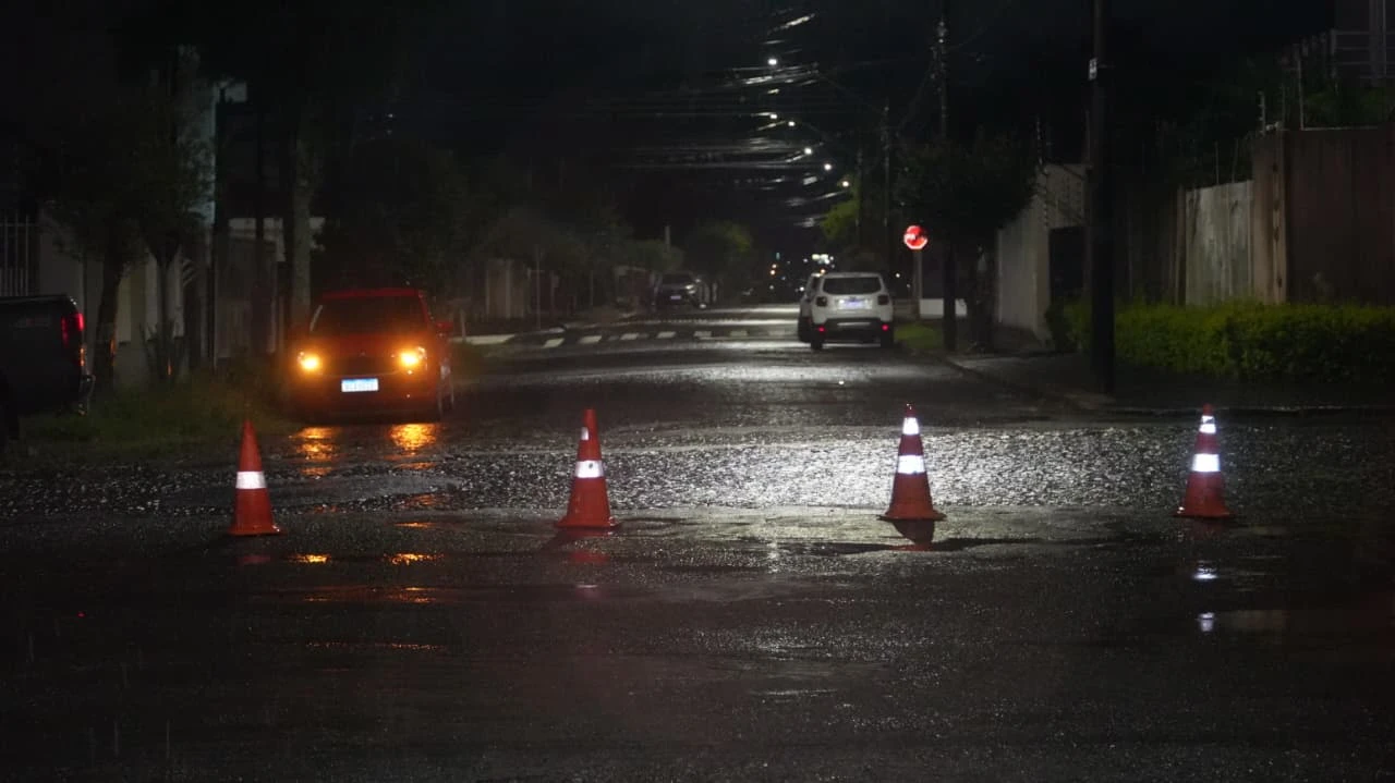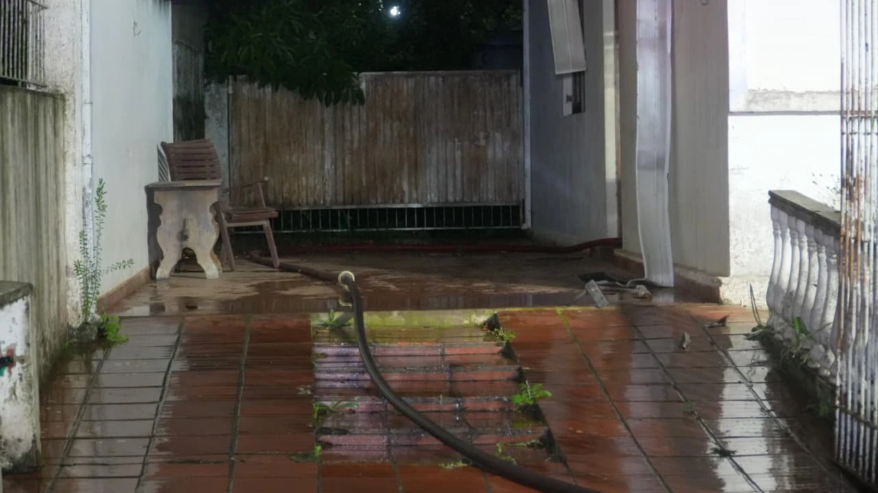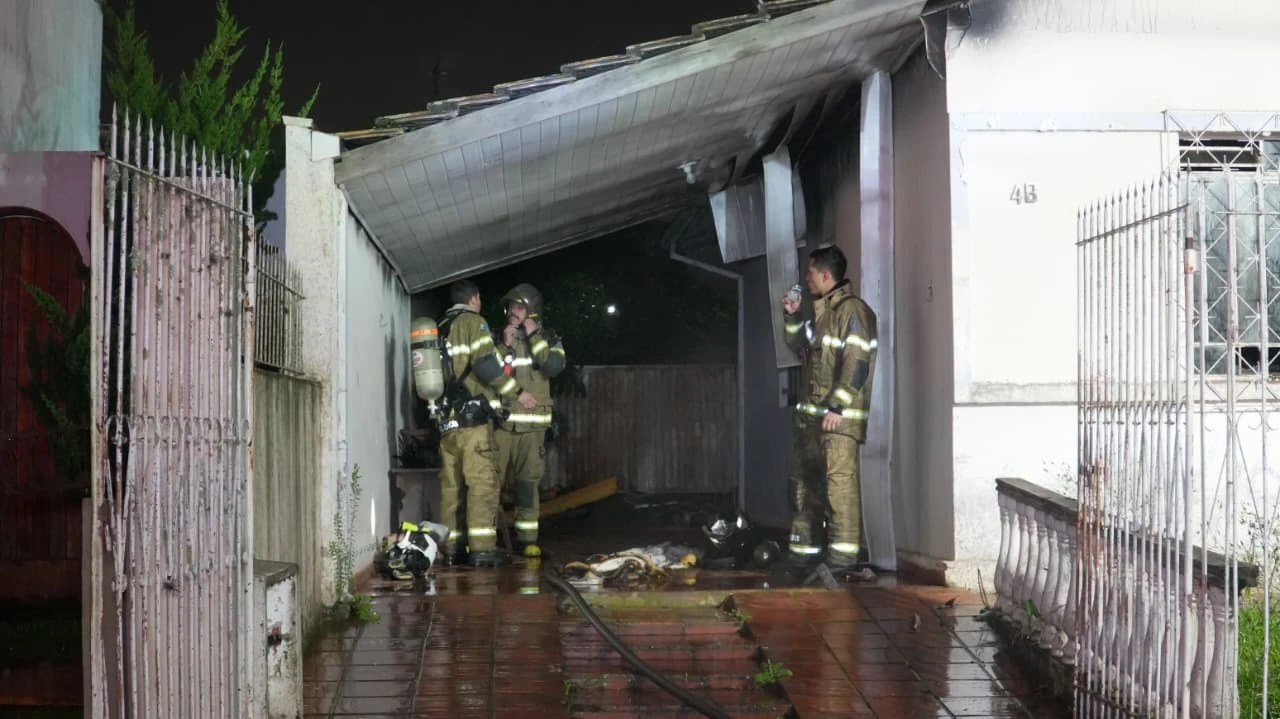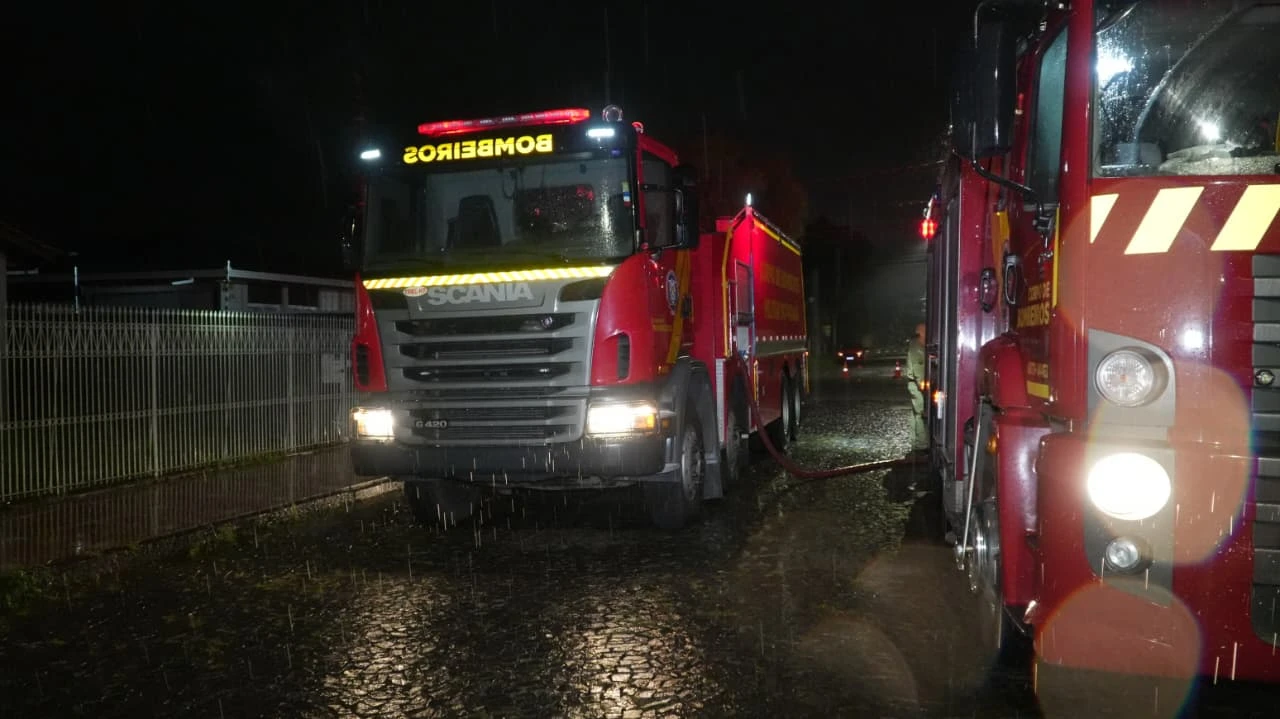 O Corpo de Bombeiros realizou o combate ao fogo, mas o imóvel sofreu danos. A rua necessitou ser interditada para a ação.
