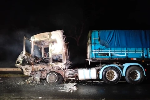 No local, os bombeiros constataram que o cavalo do caminhão já estava completamente tomado pelas chamas, enquanto a carreta começava a pegar fogo. A equipe atuou rapidamente no combate ao incêndio, conseguindo controlar as chamas e realizar o resfriamento do veículo.
