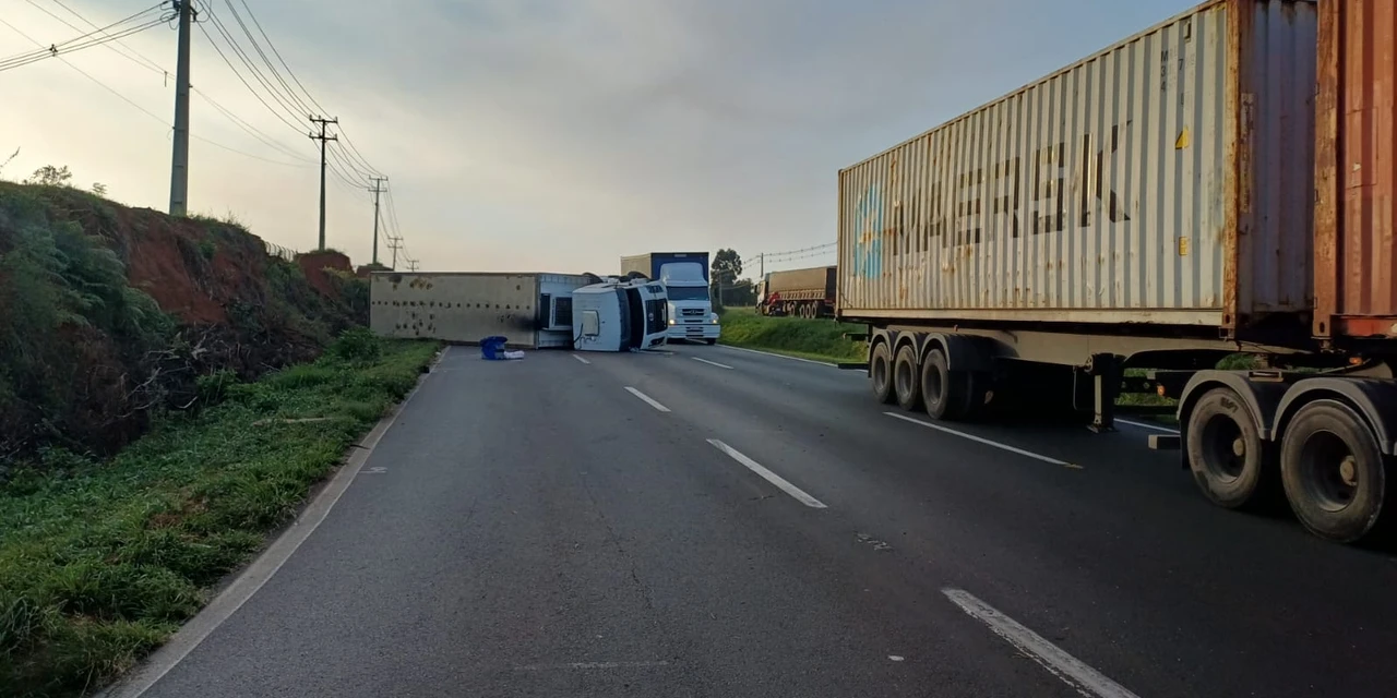Ainda de acordo com a PRF, será necessário realizar o transbordo da carga antes do destombamento do veículo, o que poderá manter a interdição parcial da via.