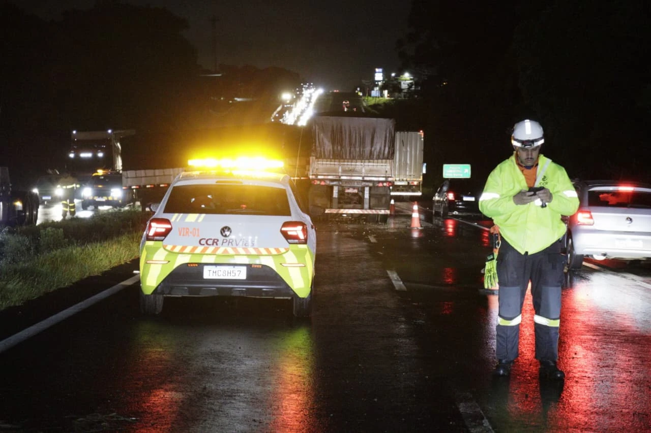 De acordo com informações apuradas no local pelo D'Ponta News, o carro, de modelo não identificado até o momento, teria freado bruscamente no km 505 da rodovia, sentido Ponta Grossa. Um caminhão-baú cinza, que estava logo atrás, também freou em seguida, mas foi atingido lateralmente por um caminhão Scania branco, que estava sem carga.