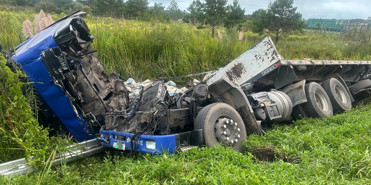 Um acidente foi registrado na manhã desta quinta-feira (05) na BR-277, km 145, sentido interior, em Balsa Nova, envolvendo duas carretas. Segundo informações da Polícia Rodoviária Federal (PRF), o acidente consistiu em uma colisão traseira seguida de tombamento.